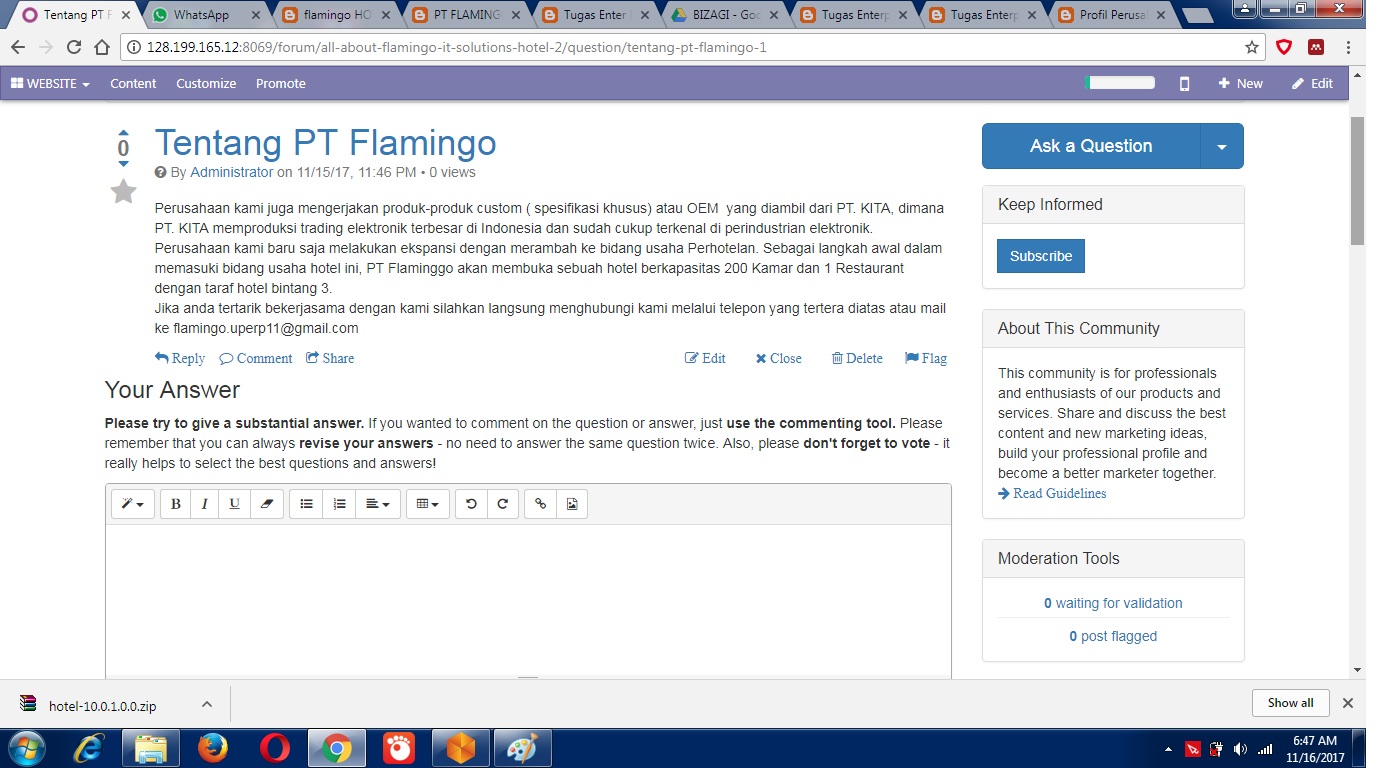 Membuat website dari PT Flamingo, hal ini dilakukan sebagai penyedia sarana informasi bagi pelanggan. Hal ini diawali dengan pembuatan homepage :